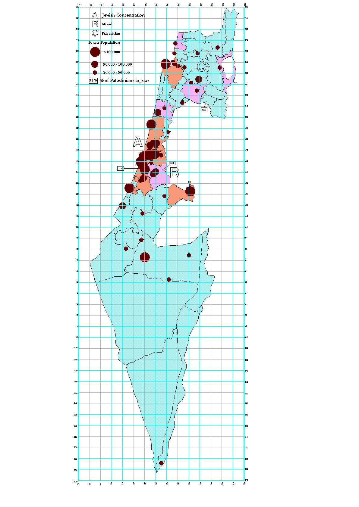 Palestine Maps: Palestinian-Jewish Israeli Population Distribution as of 1997-98 |