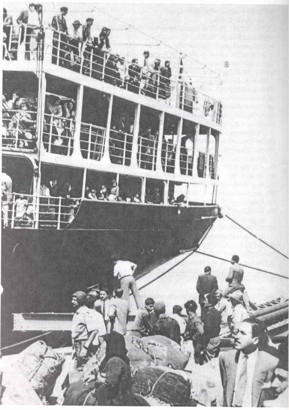 Who shall push who into the sea? Jaffa's Palestinian population boarding a ship escaping Israeli terror, May 1948