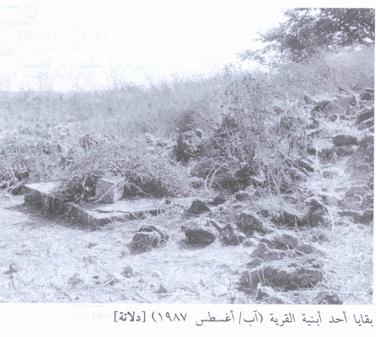 Village Before NakbaThe village, located on the upper slope of a relatively high hill, was built on the ruins of an ancient site that contained old structures, caves that had once been inhabited, cisterns, and large pools (see photo). During the Crusader period the site was called Deleha. In 1596, Dallata was a village in the nahiya of Jira (liwa' of Safad) with a population of 127. It paid taxes on a number of crops, including wheat, barley, and olives, as well as on other types of produce and property, such as goats, beehives, vineyards, and a press which was used for processing either olives or grapes. [Hut. and Abd.:177]In the late nineteenth century, Dallata was a village built of stone and mud, with about 100 residents. Visitors to the area reported that the village was located at the foot of a large hill, surrounded by olive groves and arable land. [SWP (1881) I:197] The village was surrounded by stone formations suitable for construction, and its houses were spaced at comfortable distances from each other. Springs provided water for domestic purposes. The entire population was Muslim. The village had a small school that had thirty-seven students in 1945. The villagers worked primarily in rainfed agriculture, although some engaged in animal husbandry and others worked in wood cutting and trade. The dominant crops were fruits of various kinds and olives, which were planted in scattered patches around the village. Grain was grown in nearby wadis and in small plots on the lower slopes of the hills. In 1944/45 a total of 3,651 dunums were allocated to cereals and 302 dunums were used for orchards. Village Occupation and Ethnic CleaningDallata was probably occupied sometime after the fall of the sub-disctrict capital of Safad on 10-11 May. Indirect evidence suggests that the village was seized in the course of Operation Yiftach (see Abil al-Qamh, Safad sub-disctrict). If so, it was probably one of the villages attacked in the latter stages of the operation, like neighboring 'Ammuqa, occupied on 24 May. [See M: l20-24]Zionists Colonies on Village LandsIsrael established the settlement of Dalton (196269) in 1950 on village lands, slightly southwest of the village site.Village TodayAll that remains are the debris of the houses scattered across the site, partly covered by grass, shrubs, and trees. A few stone terraces on village land are still intact, and some olive trees still grow (see photos). About 1 km south of the site lies the Israeli settlement of Dalton. Part of the land around the village has been turned into a forest, while other parts of it are used as pasture.SourceDr. Walid al-Khalidi, 1992: All That Remains. |