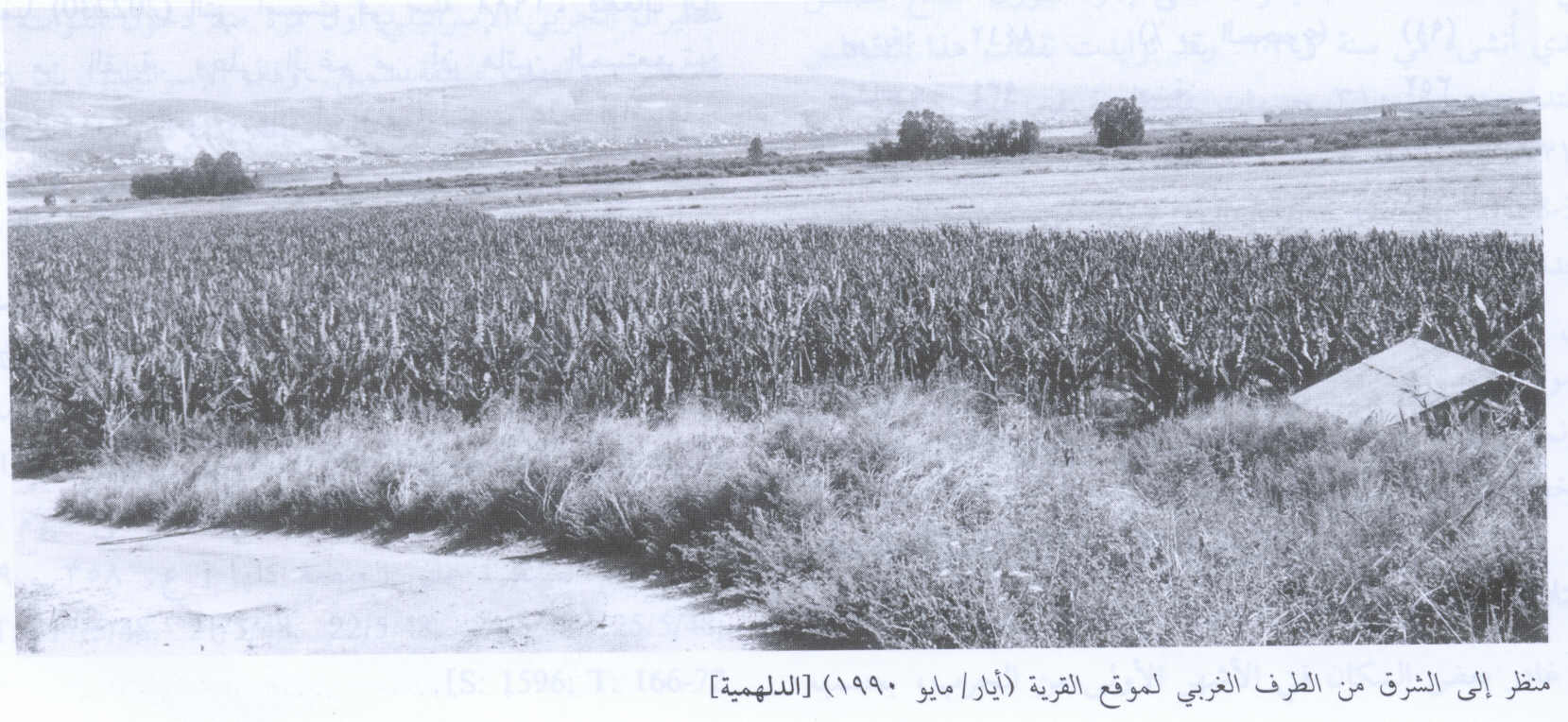 Agriculture, the mainstay of al-Dalhamiyya's economic life, was based on vegetables and citrus. Lands to the north and west of the village were endowed with a silt-rich soil that enhanced their fertility. The villagers relied on the Yarmuk River for irrigation. In 1944/45 a total of 1,709 dunums was allocated to cereals; 29 dunums were irrigated or used for orchards. On the southwestern outskirts of the village was Khirbat al-Dalhamiyya (203228), a mound of ruins and potsherds.