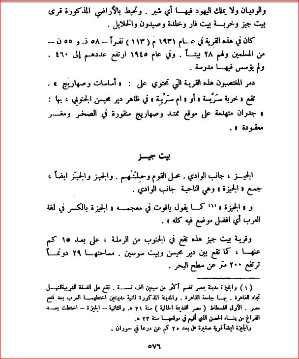 القرية قبل النكبة (كي لا ننسى للدكتور وليد الخالدي)كانت القرية مبنية على أرض متعرّجة في التلال السفحية لجبال القدس. وكانت طريق فرعية تصلها بطريق غزة-القدس العام، الذي كان يقع إلى الشمال من أراضي القرية. وكان بعض الطرق الترابية الموسمية يصلها أيضاً بقريتي دير محيسن وبيت سوسين. في بداية هذا القرن، كانت القرية مستطيلة الشكل، ضيقة الشوارع، ومنازلها مبنية بالحجارة والطين، وسكانها من المسلمين. وكان وسطها يضم بضعة دكاكين ومسجداً ومدرسة أُنشئت في سنة 1947، بتمويل مشترك بيت سكان بيت جيز وسكان بيت سوسين المجاورة. وكانت الزراعة عماد اقتصاد بيت جيز، إذ كان سكانها يزرعون أنواعاً من الغلال؛ منها الحبوب والخضروات والتين واللوز والزيتون. وكانوا يستنبتون الزيتون في 14 دونماً من أراضيهم. في 1944/1945، كان ما مجموعه 6525 دونماً مخصصاً للحبوب، و36 دونماً مروياً أو مستخدماً للبساتين. وكان جزء من الأراضي المحيطة مرعى للمواشي، وهذا ما مكّن سكان القرية من تربية الضأن والماعز، بينما كان الجزء الآخر مغطى بالغابات. وكان في جوار بيت جيز خرب عدة. إحتلال القرية وتطهيرها عرقياكل قرى ممر القدس التي لم تسقط خلال عملية نحشون احتلت في أثناء المعارك اللاحقة التي دارت حول اللطرون، في أيار/مايو وحزيران/يونيو 1948. وتم احتلال بيت جيز في الفترة بين الهجومين الأول والثاني على اللطرون، أي بين 15 و30 أيار/مايو. إذ ذكرت صحيفة ((نيويورك تايمز)) أن هجوماً إسرائيلياً، شن على اللطرون في 25 أيار/مايو، وامتد في اليوم التالي إلى بيت جيز وخُلدة، لكنه مُني بالفشل. وقد وصف مراسل الصحيفة المعركة حول بيت جيز وخلدة بأنها ((أضخم صدام في الحرب حتى تاريخه)). وفي 28 أيار/مايو، أعلن الجيش الإسرائيلي رسمياً احتلال القرية، بعدما توغلت قواته إلى الجنوب من طريق يافا-القدس. وجاء في ((تاريخ حرب الاستقلال)) أن بيت جيز وبيت سوسين وقعتا في قبضة لواء شيفع (السابع)، المشكل حديثاً، في سياق عملية بن ؟نون. وقد أتاح احتلال القريتين للقوات الإسرائيلية إقامة خط إمداد بديل إلى القدس يتجاوز اللطرون. يذكر المؤرخ الإسرائيلي بِني موريس أن هجوماً عسكرياً شُن على القرية في الشهر السابق، يوم 20 نيسان/أبريل، وأن سكانها طُردوا في ذلك التاريخ. إلا أن المؤرخ الفلسطيني عارف العارف يقول إن المحاولة الأولى للاستيلاء على بيت جيز وقعت في 22-23 أيار/مايو، وأنها أخفقت، وأن من أسباب إخفاقها أن القوات الإسرائيلية تلقت تقارير عن إخلاء القرية مغلوطاً فيها. وكان من نتائج ذلك أن فوجئت بما جوبهت به من عنف المقاومة التي أبداها سكان كل من بيت جيز وبيت سوسين، فضلاً عن مقاومة القوات العربية النظامية في قطاع اللطرون. ويضيف العارف أن كلتا القريتين سقطت في هجوم لاحق شن في 30 أيار/مايو. القرية اليوميُستعمل الموقع، الذي غلبت النباتات البرية عليه، متنزهاً. ولم يبق من معالم القرية إلا المدرسة التي يشبه طرازها المعماري طراز مدرسة قولة. والتي باتت تستخدم لأغراض التنزه واللهو، وإن كان ضُم إليها برج لرصد الحرائق. وقد كُتب على لوحة في البرج بالإنكليزية والعبرية ما معناه: ((سمي مرصد الحرائق هذا تيمناً بالسيد والسيدة كولمان ليفنه من الصندوق القومي اليهودي في ساوثند ويستكليف في إنكلترا)) (This Fire Observation Post Is Named in Honour of Mr. And Mrs.Coleman Levene of Southend and Westcliff [Jewish National Fund]). وثمة منازل ما زالت قائمة؛ بعضها يُستعمل مستودعات، وبعضها الآخر مهجور. وأحد المنازل/المستودعات بناء حجري كبير، له سقف مسطح وثلاث نوافذ جانبية ذات قناطر قوطية الشكل. ثلاثة من المنازل المهجورة مؤلف كل واحد منها من طبقتين، وتتسم بسمات معمارية متنوعة: أبواب ونوافذ مستطيلة ومعقودة، سقوف مسطحة، شرفات قائمة على أعمدة مربعة. وتُزرع الحبوب والخضروات والزيتون في الأراضي المحيطة. المغتصبات الصهيونية على اراضي القريةثمة ثلاث مستعمرات إسرائيلية على أراضي القرية: هرئيل التي أسست في سنة 1948؛ تسيلافون التي أسست في سنة 1950؛ غيزو التي أسست في سنة 1968. |