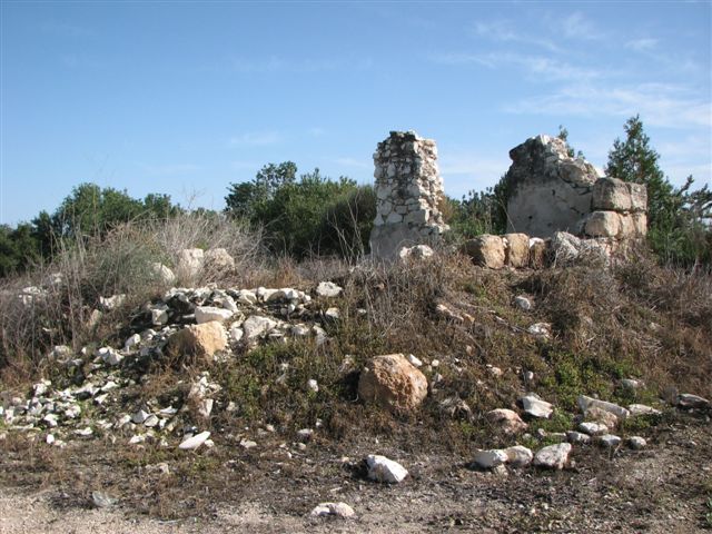 Only two houses are left. Between them the walls of two destroyed houses still stand; the iron braces that formerly supported the roofs are still attached to the brickwork. Otherwise, the site is covered with wild vegetation. Eucalyptus forests and carob and cypress trees grow around the site (see photos).