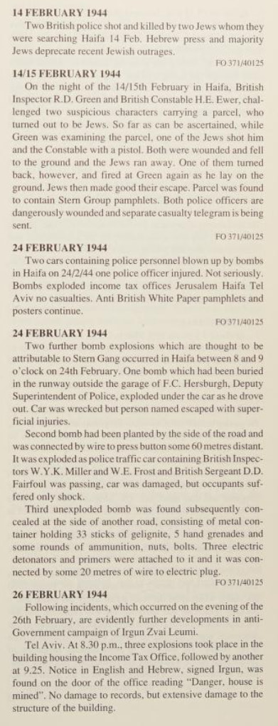 While British forces in Europe were fighting Hitler, British forces in Palestine were subject to terrorist attacks like the ones detailed below, carried out under the direction of two of Israeli's futures PMs, Yitzhak Shamir and Menachem Begin. Here is quick compilation: